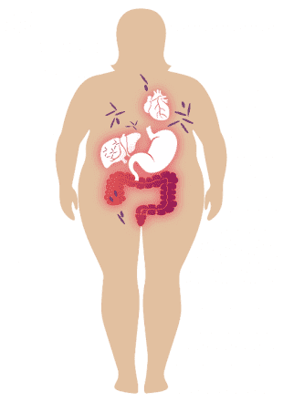 ictus, aterosclerosi, diabete, infarto o gravi malattie articolari. L'obesità è la